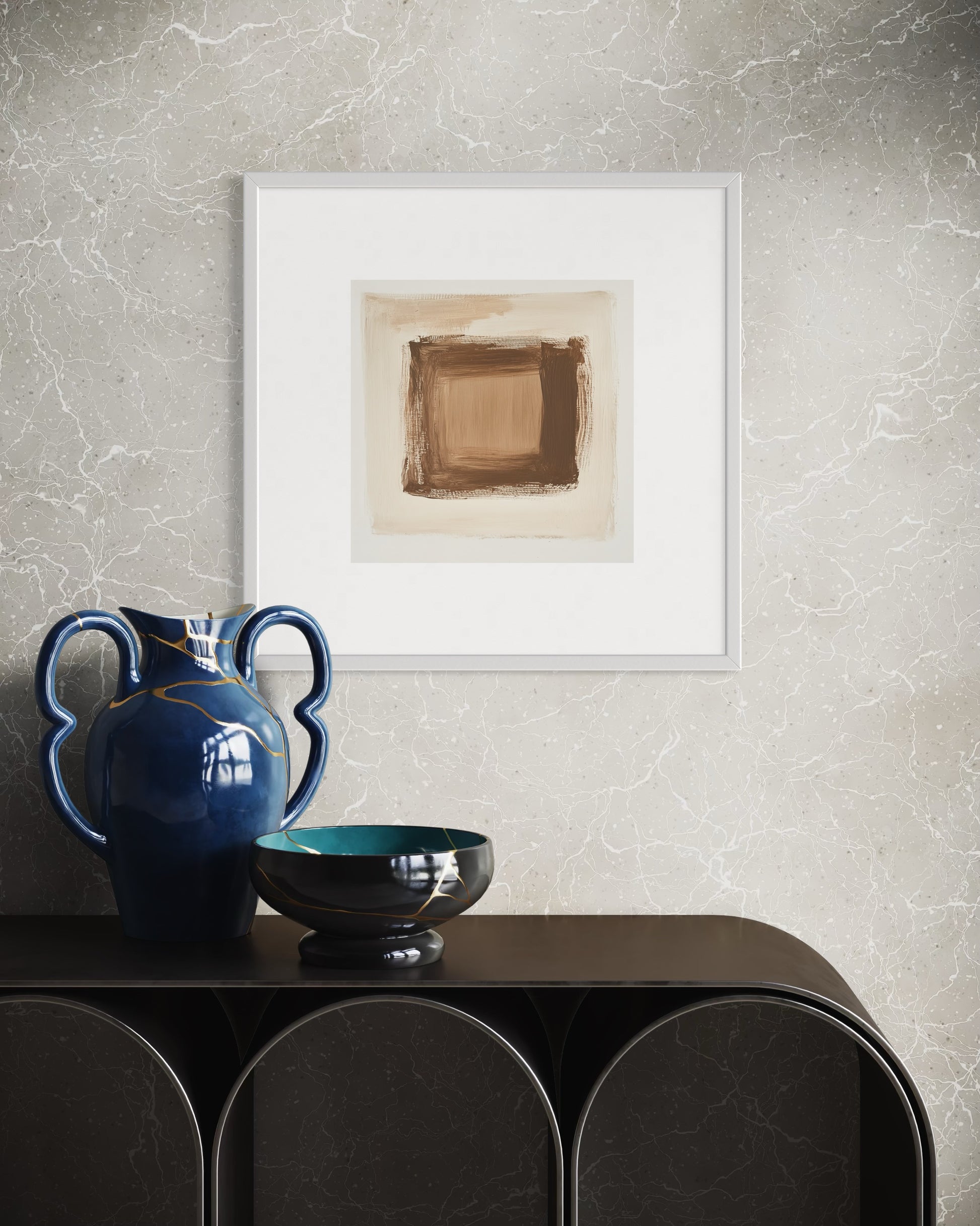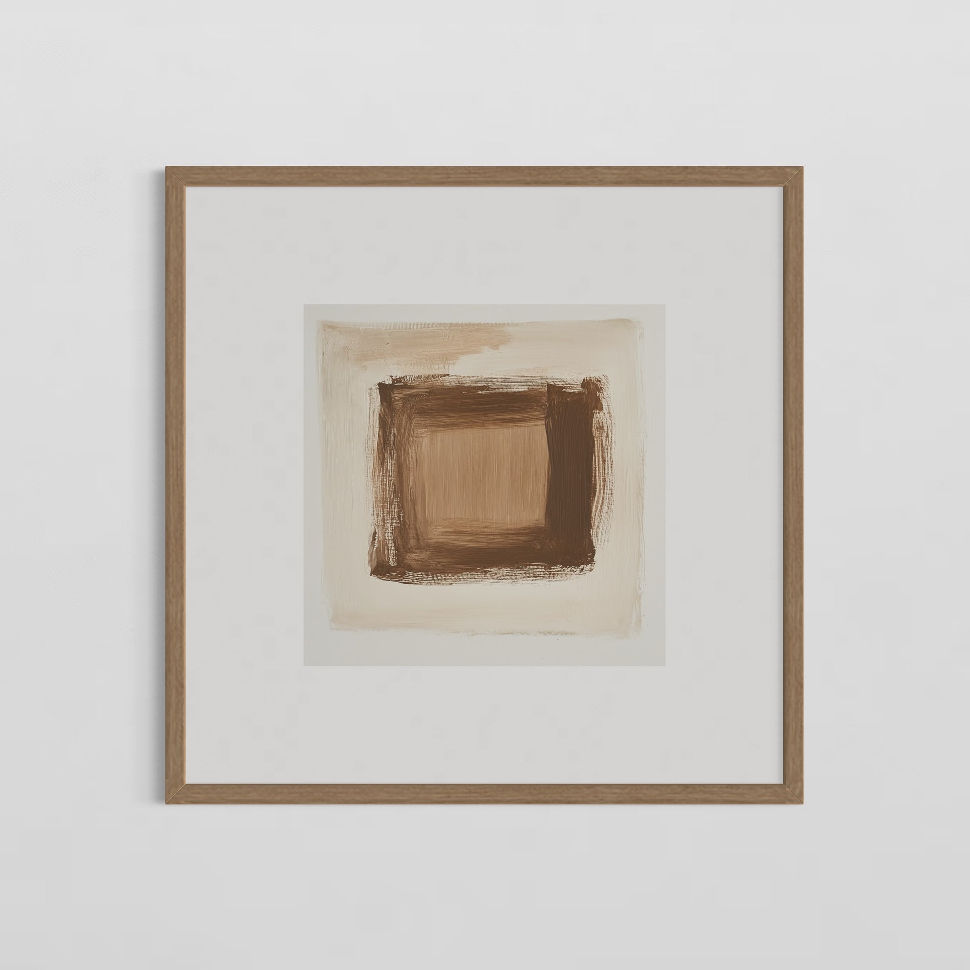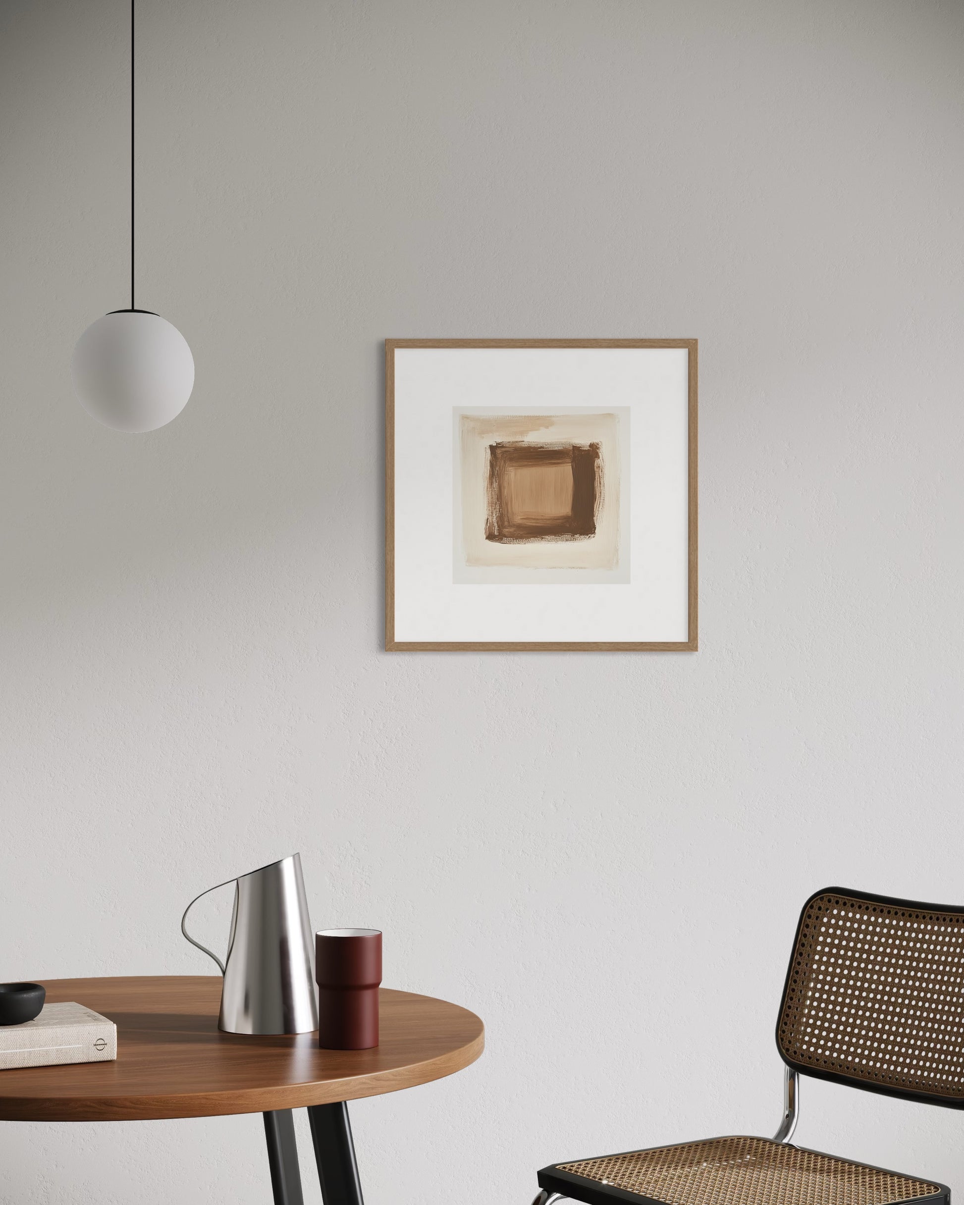 Esta impresión abstracta y manchada está impresa en papel de algodón duro. En estilo minimalista y con tonos cafés. Perfecto para espacios que busquen transmitir una sensación de simplicidad elegante.